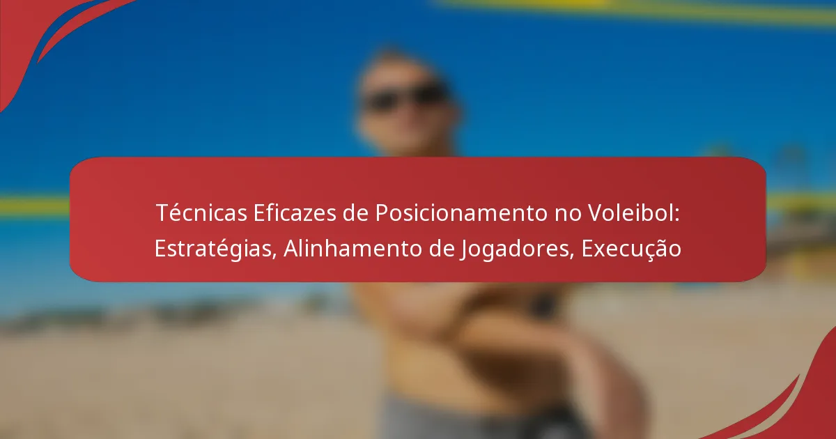 Técnicas de posicionamento eficazes no voleibol são cruciais para maximizar o desempenho dos jogadores e o sucesso da equipa. As práticas principais incluem manter um alinhamento adequado, antecipar jogadas e executar movimentos com precisão para garantir uma cobertura ótima do campo.